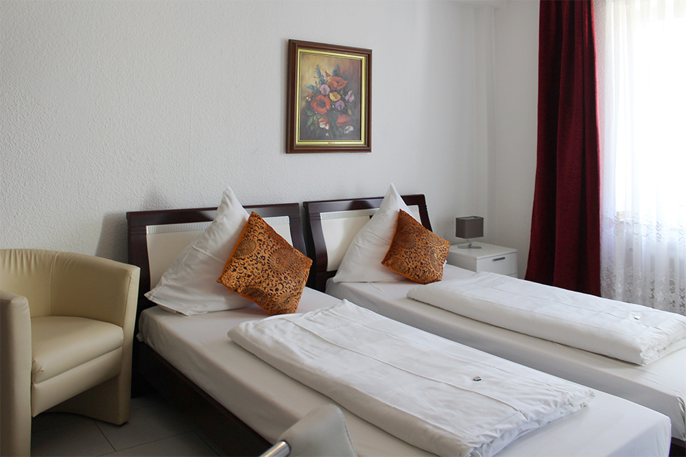Es gibt in unserem Hotel Zimmer mit Doppelbetten oder zwei einzelnen Betten, die getrennt gestellt werden können. Unsere bequemen Betten garantieren einen geruhsamen Schlaf. Hier werden Sie sich wohlfühlen.